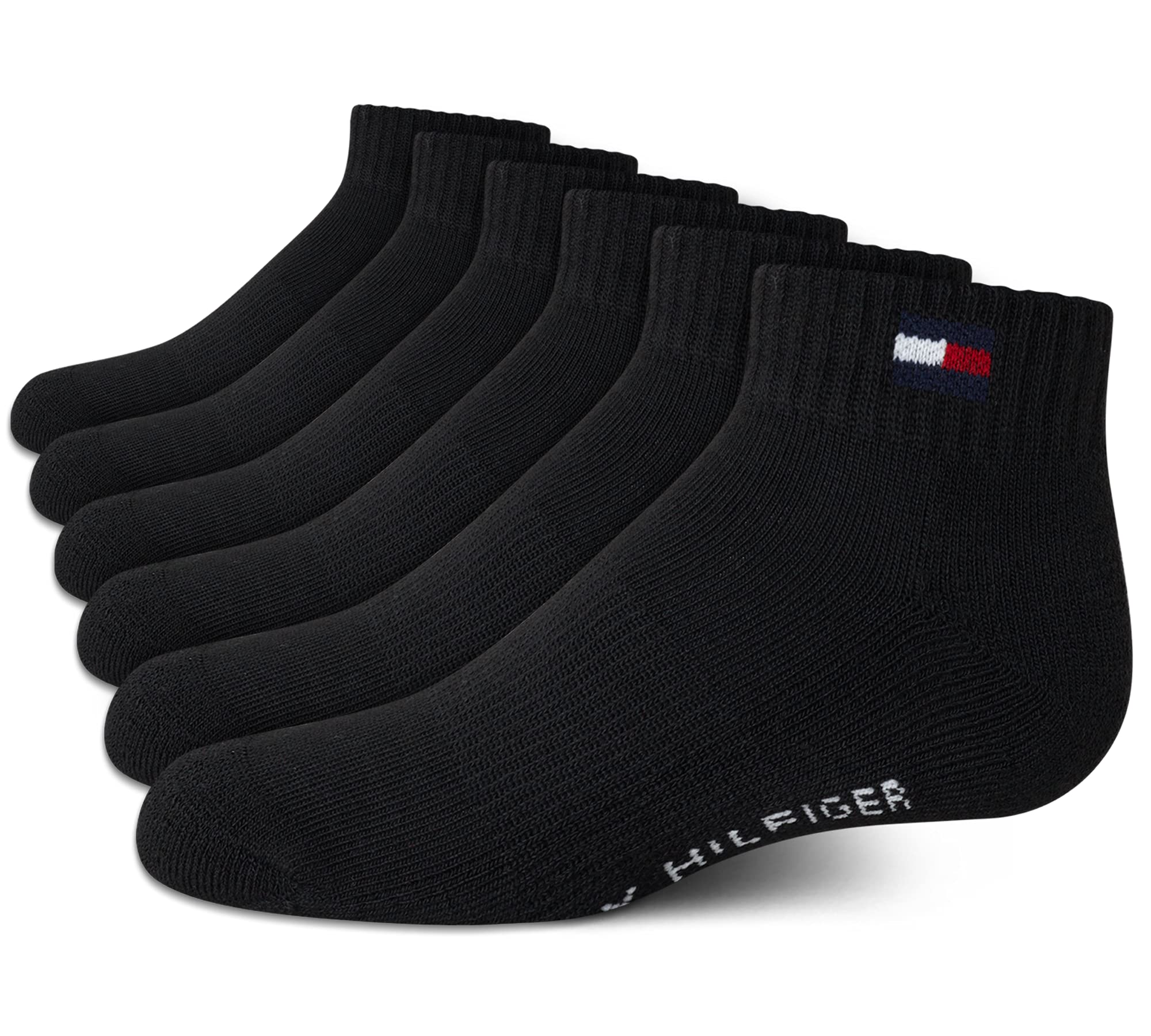 Tommy hilfiger calcetines deportivos para niños – calcetines tobilleros de corte cuarto con cojín de rendimiento (paquete de 6), talla m, negro - escala de tamaño: niño/s: talla de zapato 6-10.5, niño pequeño/m: talla de zapato 10.5-4, niño grande/l: talla de zapato 4-11 - tommy hilfiger con licencia oficial: calcetines de corte de un cuarto para niños; desde 1985, tommy hilfiger ha estado creando ropa y accesorios con influencias preppy, náuticas y atléticas - transpirable: el diseño de calcetín atlético de primera calidad promueve la circulación del aire, manteniendo tus pies frescos y cómodos todo el día - cojín cómodo: los calcetines para niños proporcionan una comodidad superior; como pioneros del estilo clásico americano fresco, los calcetines deportivos tommy hilfiger de corte de cuarto para niños son la mejor opción - paquete múltiple: obtén 6 pares de calcetines de alta calidad para niños de corte cuarto; abastécete con este paquete a granel y ahorra