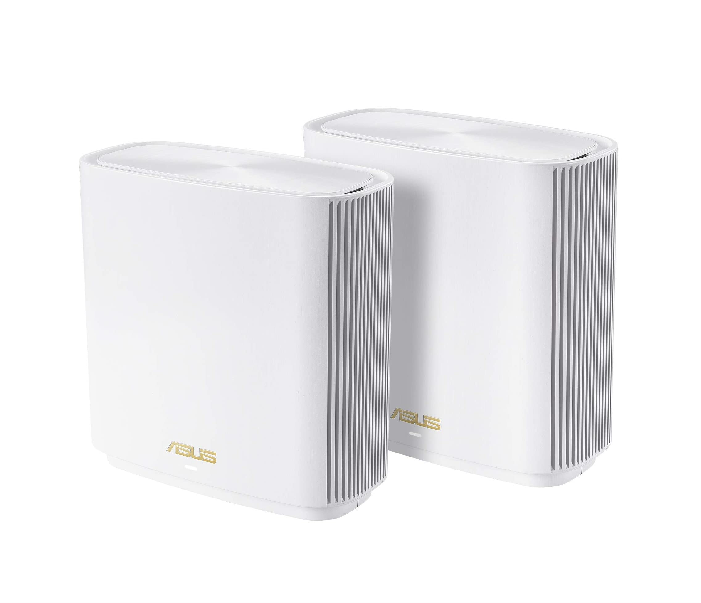 Sistema wifi en malla wifi 6 tribanda asus zenwifi xt9 ax7800 (paquete de 2), 802.11ax, hasta 5700 pies cuadrados y más de 6 habitaciones, aimesh, seguridad de internet gratuita de por vida, controles parentales, puerto wan de 2,5 g, unii 4, blanco: máximo rendimiento: la malla tribanda wifi 6 para todo el hogar proporciona velocidades ultrarrápidas de hasta 7800 mbps para tu hogar inteligente. fuente de alimentación: entrada ac: 110 v ~ 240 v (50 ~ 60 hz). salida dc: 12 v con una corriente máxima de 3 a. - cobertura ampliada: la última tecnología asus rangeboost plus mejora significativamente el alcance de la señal wifi y la cobertura general, ofreciendo una cobertura amplia en áreas de hasta 5700 pies cuadrados - fácil gestión: la aplicación asus router, con su interfaz intuitiva, facilita la gestión del sistema wifi en malla directamente desde su teléfono inteligente - seguridad de red integral: manténgase seguro en línea con aiprotection pro gratuito de por vida con aiprotection pro con tecnología trend micro, que proporciona una protección que se actualiza automáticamente para todos sus dispositivos conectados, y un acceso vpn seguro a través de asus función instant guard - conexión por cable ultrarrápida: disfrute de una conectividad por cable hasta 2,5 veces más rápida con un puerto wan de 2,5 gbps y una agregación lan