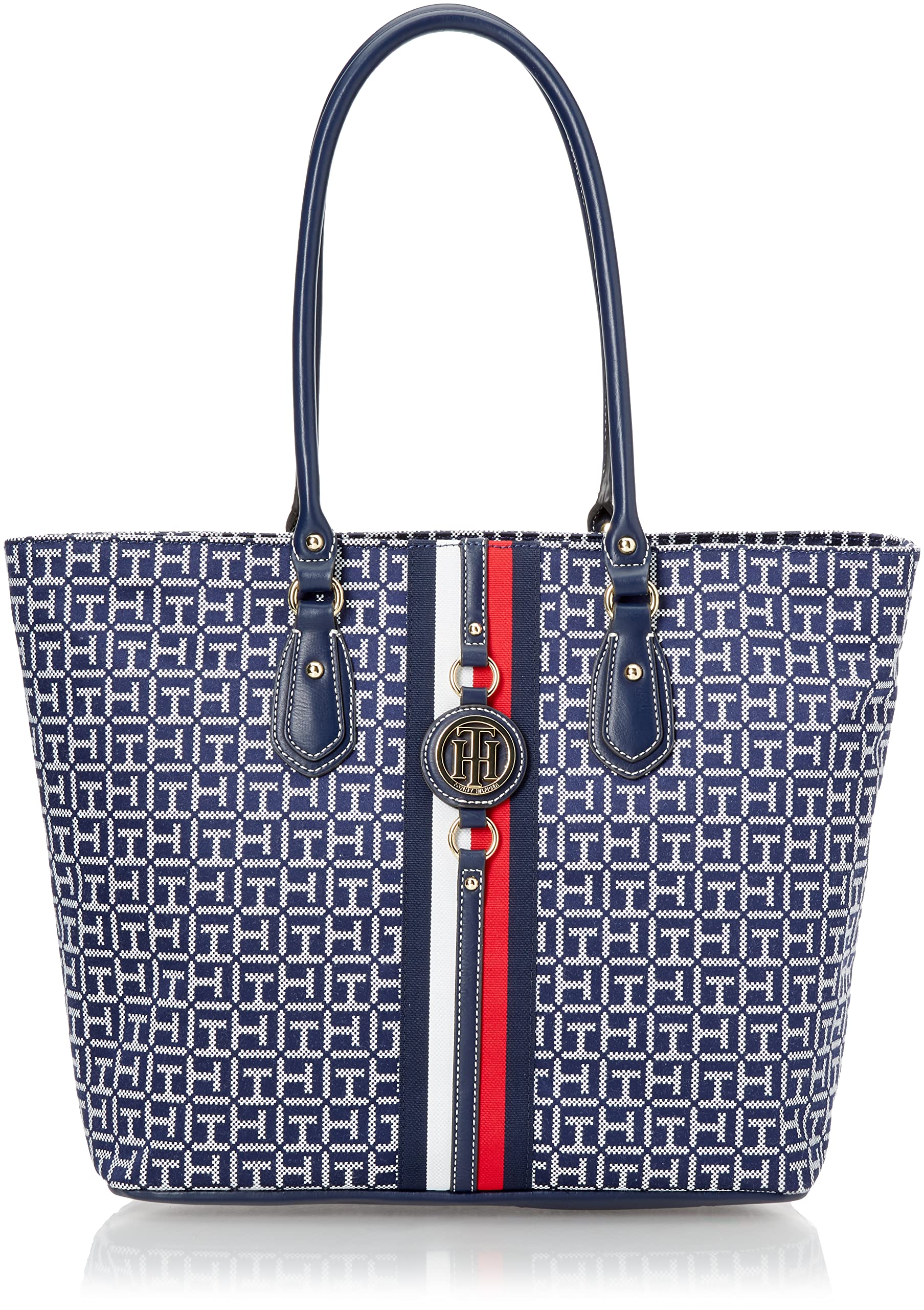 Tommy hilfiger bolso jaden plus para mujer, azul marino/blanco, bolso jaden plus - elegante y elegante con una silueta de forro limpio y un amplio espacio para todos tus elementos esenciales, la bolsa jaden de tommy hilfiger es la bolsa diaria que has estado buscando. - viaja bien: el bolso tote jaden ultraligero de tommy hifiger para mujer cuenta con bolsillos interiores con cremallera y bolsillos deslizantes y una cremallera superior para mantener todo seguro sobre la marcha. - versátil por diseño: desde el trabajo hasta el brunch de fin de semana, mantente organizado al estilo tommy con las bolsas jaden más vendidas. - estilo de firma: esta bolsa de mano imprescindible para mujer está pulida con la raya del logotipo de la marca y herrajes en tono dorado brillante con el medallón th. - forever classic: descubre los mejores bolsos para mujer, perfeccionados por el equipo de tommy hilfiger, proveedores de estilo clásico y americano desde 1985. - dimensiones: 17" de largo; 11 ½" de alto; 6 ¾" de ancho; 9" de caída.