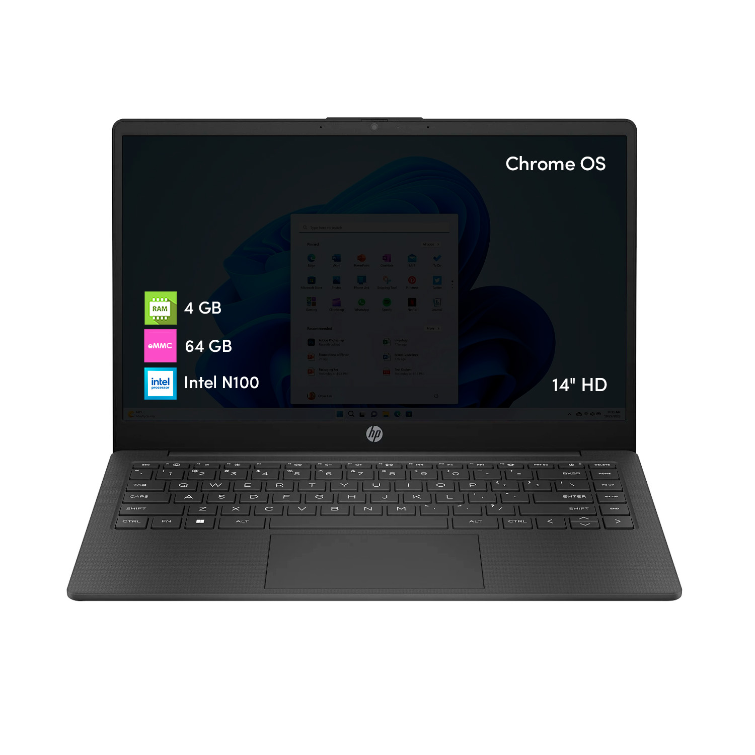 Notebook Chromebook Hp Intel N100 4Gb 64Gb 14' Hd Chrome Os Gris | Lider Electrohogar