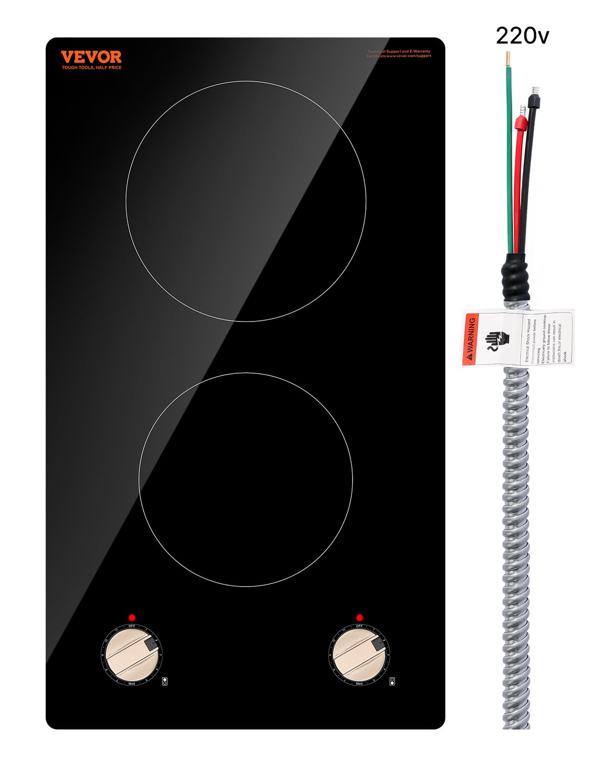Vevor placa de inducción, quemador eléctrico de encimera de 3500 w, estufa de control de perilla de 2 quemadores, estufa de inducción integrada con 12 ajustes de temperatura, superficie de vidrio, - cocina de inducción de alta potencia: la estufa eléctrica incorporada de 3500 w ofrece un calentamiento rápido y uniforme, con 12 niveles de potencia ajustables, lo que la hace ideal para guisar, freír, cocinar a fuego lento, cocinar al vapor, hervir, saltear y asar. con 2 zonas de cocción, puede cocinar de manera eficiente y utilizar una amplia gama de utensilios de cocina compatibles. - compatible con múltiples utensilios de cocina: este quemador eléctrico de encimera tiene una alta compatibilidad con varios tipos de utensilios de cocina resistentes al calor, como hierro fundido y acero inoxidable, lo que ayuda a reducir la pérdida de calor. - nota: solo se pueden usar utensilios de cocina con propiedades magnéticas en esta placa de inducción. - control de perilla: con controles de perilla simples y fáciles de usar, esta placa de cocina de inducción le permite ajustar rápidamente al nivel de calor perfecto. cada perilla puede controlar de forma independiente la temperatura para una cocción flexible, haciendo que las comidas navideñas como navidad, acción de gracias, pascua y otras ocasiones especiales sean más fáciles que nunca. - características de seguridad: esta estufa eléctrica incluye apagado automático, protección contra sobretensión y bajo voltaje, control de temperatura e indicadores de calor residual para mantener la cocción segura. está diseñado para la tranquilidad, por lo que es seguro para su uso por mujeres embarazadas, personas mayores y familias. - dos opciones de instalación: la estufa de inducción de 12 pulgadas se puede instalar como modelo de encimera o incorporada, proporcionando doble funcionalidad y ayudando a ahorrar espacio en la cocina. es compatible con voltaje eléctrico de 220-240v 60hz.
