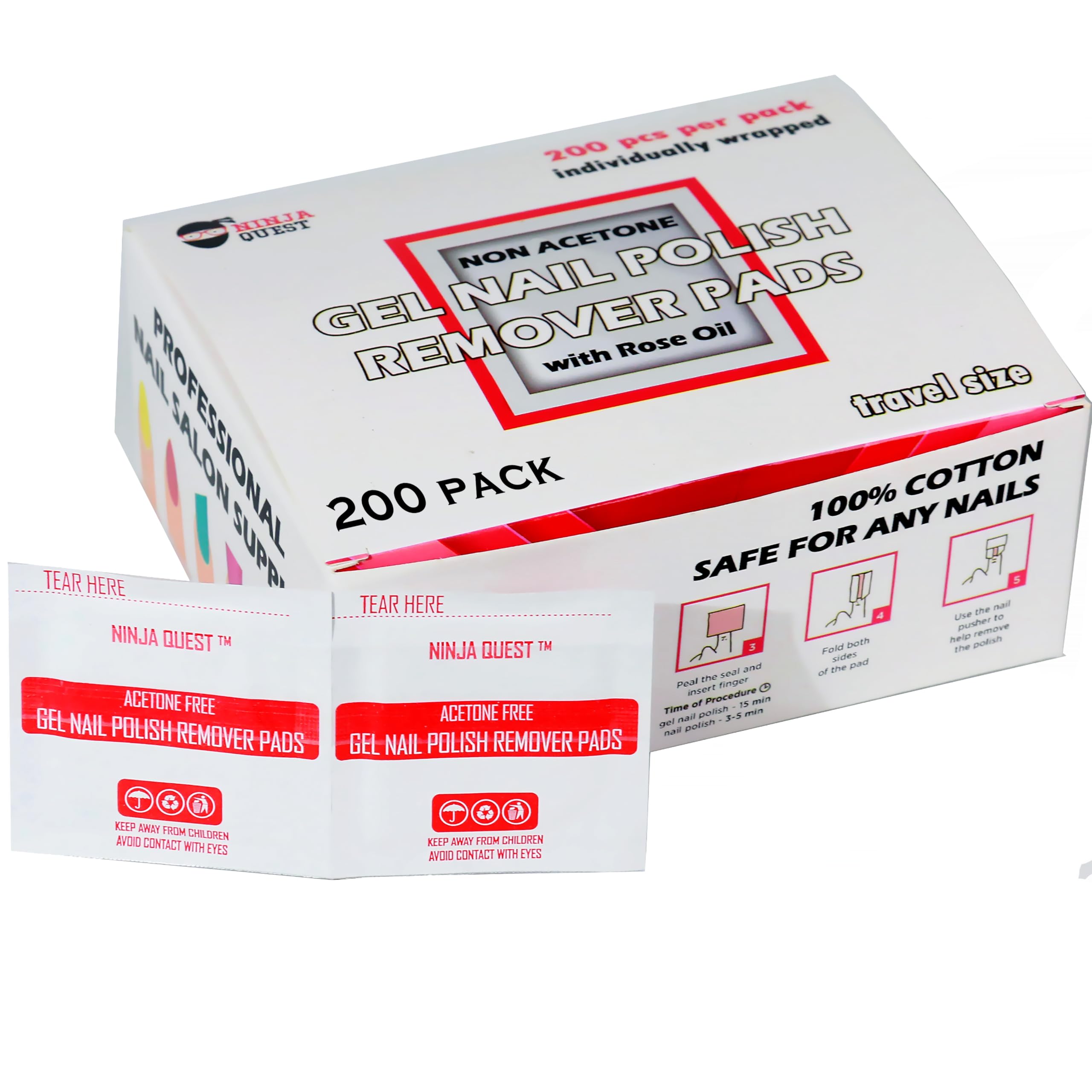 Ninja Quest - Almohadillas Quitaesmaltes, Paquete De 200 Unidades, Sin Acetona, Envueltas Individualmente | Lider Electrohogar
