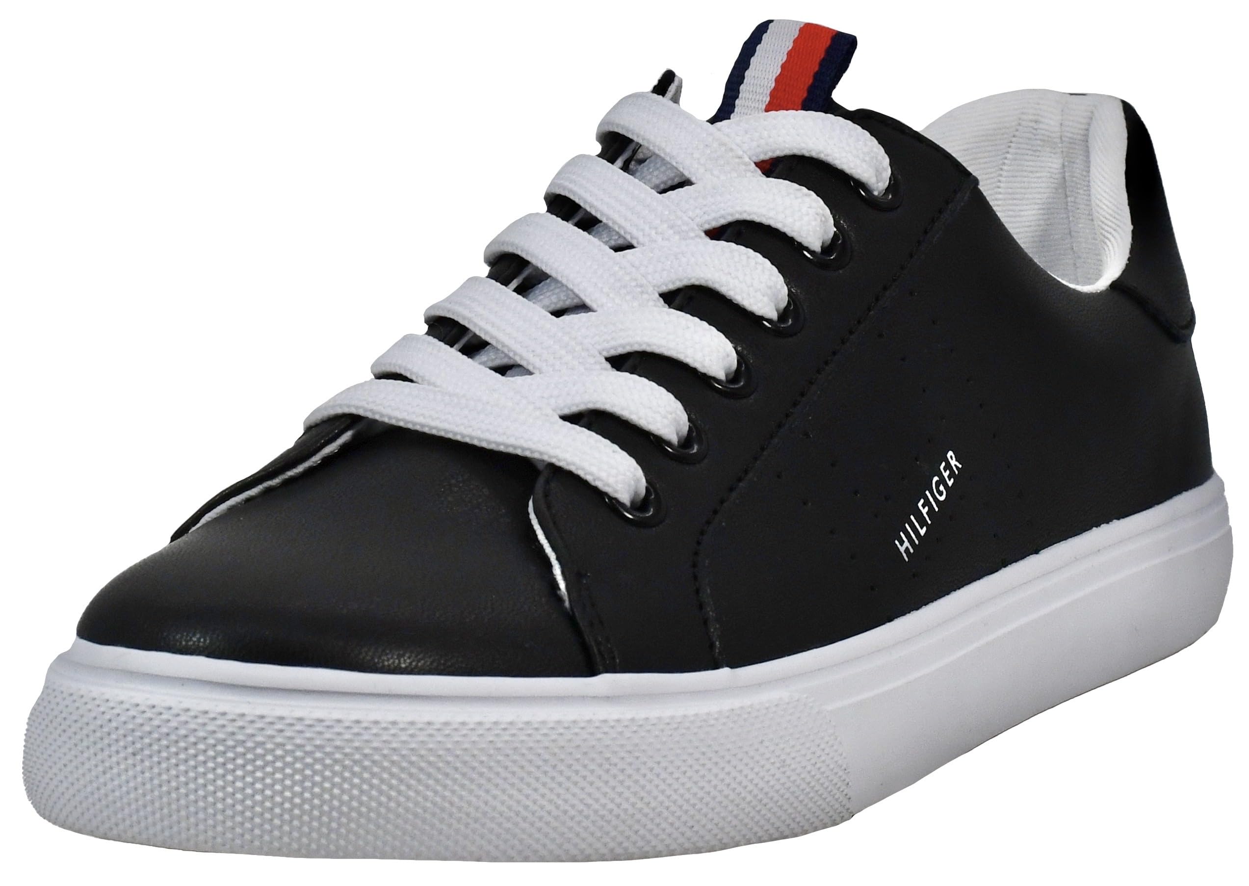 Con líneas limpias y detalles de la marca, presume de un estilo casual clásico con las zapatillas tommy hilfiger lamiss de piel sintética con cordones y lengüeta y cuello acolchados. - ponte las clásicas zapatillas lamiss, que presentan un estilo sobrio con las distintivas rayas rojas, blancas y azul marino de hilfiger en la lengüeta y una atractiva «h» perforada en el lateral. - forro textil transpirable con plantilla ligeramente acolchada para mayor comodidad. - suela sintética duradera. - detalles perforados en los laterales