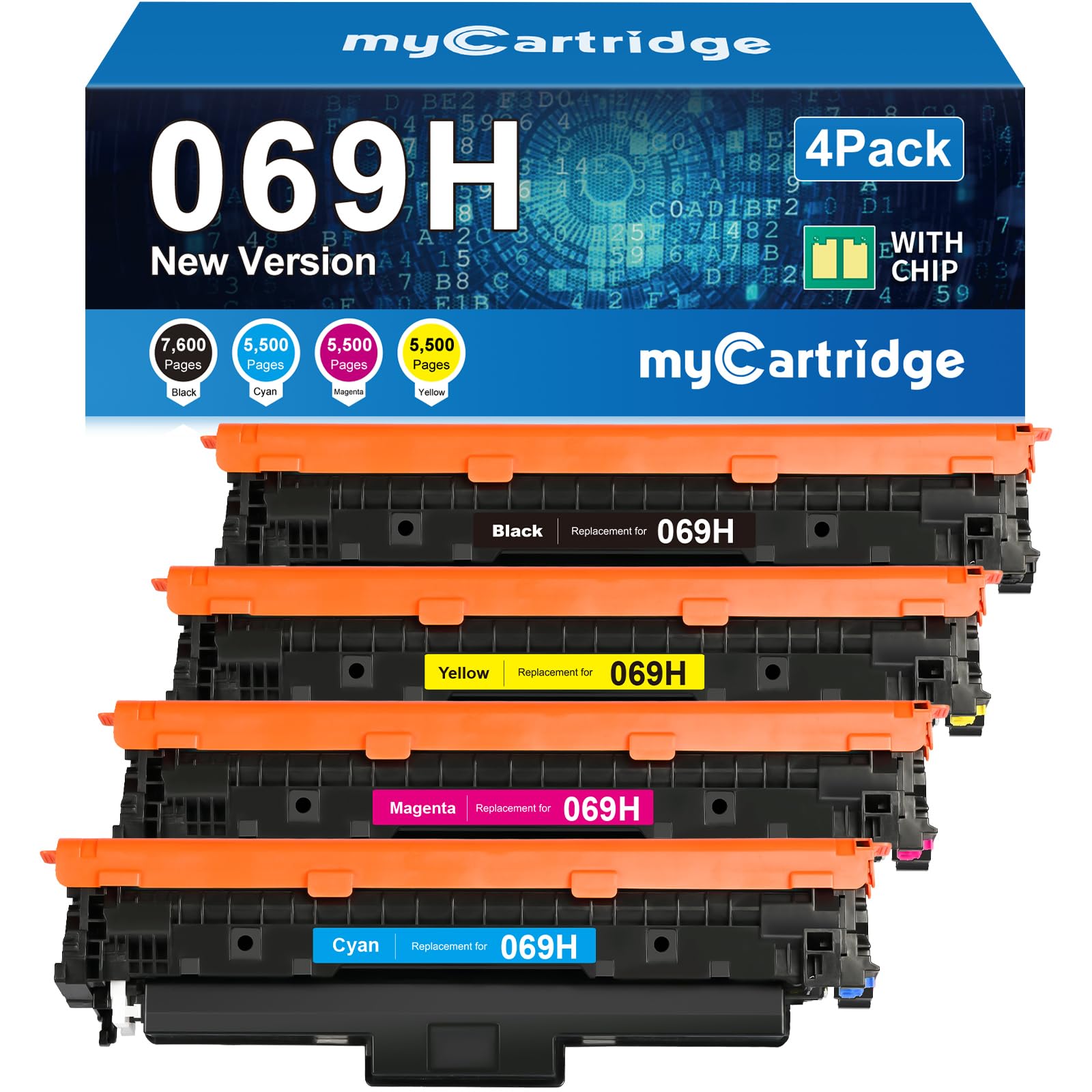 Juego de cartuchos de tóner mycartridge 069h, compatible con impresoras canon color imageclass mf753cdw, mf751cdw y lbp674cdw (paquete de 4, b/c/m/y).
