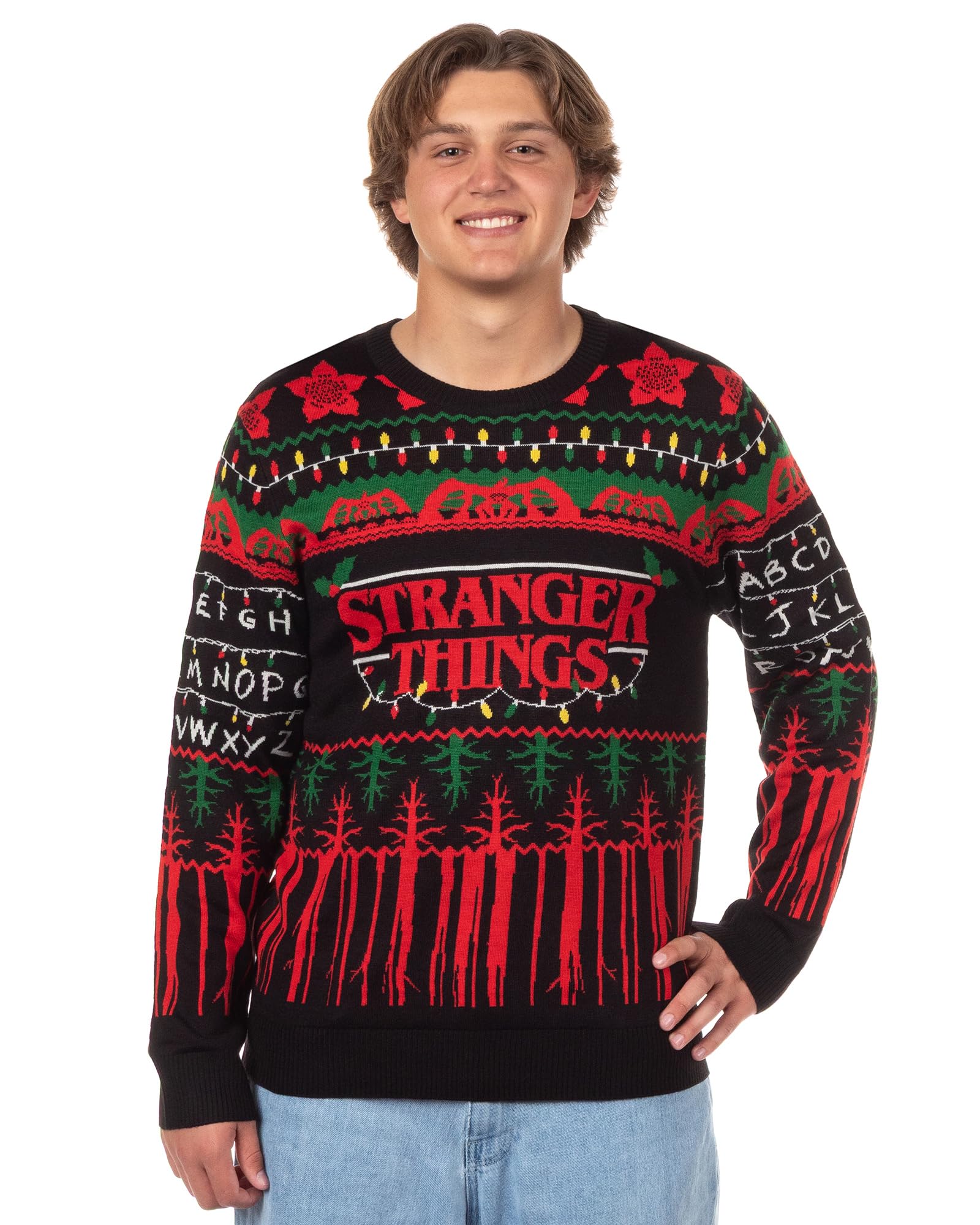 Entra en el mundo de hawkins con este jersey de punto stranger things que captura el encanto espeluznante del upside down. la parte delantera cuenta con un tejido detallado del logotipo de stranger things ensartado con coloridas luces navideñas, acentuado por el diseño del alfabeto y el demogorgon. es un guiño inteligente a uno de los momentos más inolvidables del programa, traído a la vida en un tejido acogedor y texturizado que los fanáticos reconocerán de inmediato. hecho de 100% acrílico suave, este suéter de cuello redondo es fácil de llevar y cuidar. los puños y el dobladillo acanalados le dan ese ajuste tradicional y cómodo que se siente bien ya sea que esté abrigado o descansando. es el tipo de suéter que te permite mostrar tu amor por la serie mientras mantienes las cosas casuales y cómodas durante toda la temporada. - diseño detallado: este suéter de stranger things presenta un tejido detallado que muestra el logotipo del programa iluminado por luces navideñas y el patrón boca abajo debajo, con acentos de demogorgon y alfabeto - cómodo ajuste de cuello redondo: diseñado con mangas largas y puños y dobladillo acanalados, este suéter de cuello redondo ofrece una sensación ajustada y estructurada que mantiene su forma. el suave hilo de acrílico le da la cantidad justa de elasticidad, mientras que el cuello facilita la superposición sobre una camiseta o usarlo por sí solo - fácil de llevar en cualquier lugar: este suéter de punto aporta comodidad y carácter a tu rotación diaria. es una excelente opción para salidas casuales, relajarse en casa o usar en capas para climas frescos. ya sea que estés con amigos, viendo tu programa favorito o en fiestas navideñas, ofrece una comodidad excepcional y un estilo reconocible - instrucciones de cuidado simples: este suéter acrílico está diseñado para un fácil mantenimiento, sin necesidad de complicaciones. lavar con colores similares en agua fría y secar en plano para ayudar a preservar su color y forma - ideal para fans y coleccionistas: una prenda imprescindible de stranger things que combina nostalgia y comodidad en un solo tejido portátil. ya sea que se añada a una colección o se use como parte de un look diario, este suéter ofrece un elegante guiño a la serie mientras te mantiene abrigado durante toda la temporada