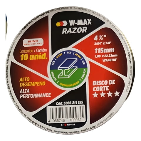 Metalfer - Disco Corte Inox/Metal Wurth 4 1/2X1Mm Pack De 10 Unidades Negro | Lider Electrohogar
