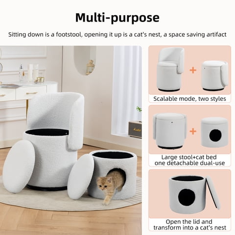 M&Ms - Stylish Upholstered Barrel Chair 360° Swivel Vanity Stool For Bedroom & Dining Chair, Built-In Storage, Soft Padded Accent Seat, Multi-Functional For Dressing/Dining, Free Cat Bed Stool Included, | Lider Electrohogar