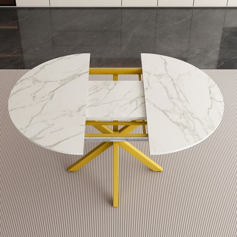M&Ms - Modern And Simple Round Dining Table With Extendable Blades, Carbon Steel X-Shaped Base, Sturdy And Durable, Suitable For Restaurants, Small Apartments And Kitchens (Can Accommodate 4-6 People)