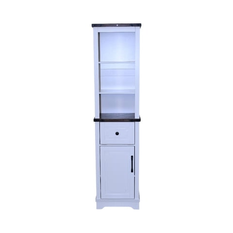 M&Ms - Narrow Cabinet,Bathroom Storage Cabinet, Farmhouse Storage Cabinet With Adjustable Shelves & Storage Drawer, Tall Linen Tower For Bathroom, Living Room, White With Black Walnut Color (Top) | Lider Electrohogar