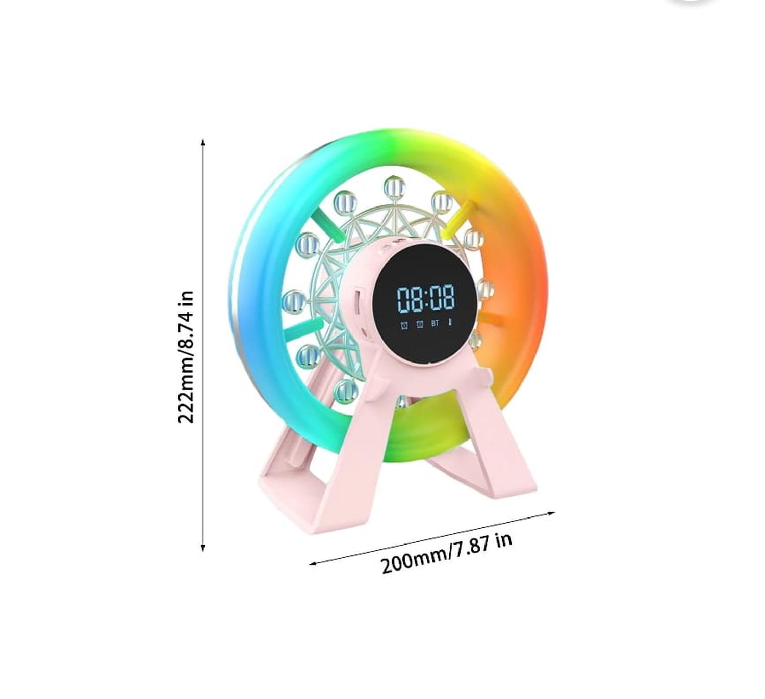 Rueda de la fortuna reloj de sonido sonido inalámbrico altavoz bluetooth de carga rápida ornamentos de escritorio caseros características: diseo y funcional: este altavoz bluetooth con reloj de audio de la rueda de la fortuna combina la reproducción de música, la pantalla y la decoración. su forma única de la rueda de la fortuna no agrega un color a su entorno doméstico, pero también se puede utilizar como una luz nocturna suave por la noche. experiencia de sonido: el sistema de altavoces incorporado proporciona una salida de sonido clara y completa. ya sea que estés escuchando música, viendo películas o haciendo videollamadas, puedes disfrutar de excelentes efectos de audio. también es compatible con la conectividad bluetooth, lo que hace que sea conveniente para usted emparejarse fácilmente con varios dispositivos, como teléfonos móviles y tabletas. multifuncional y práctico: además de la función básica de reproducción de música, el producto también tiene una variedad de funciones prácticas como reloj despertador y temporizador. ya sea que desee despertarse por la mañana o realizar un seguimiento mientras cocina, puede brindarle servicios convenientes. además, la pantalla digital led garantiza que la información sea clara y fácil de leer. ahorro de energía y concepto: diseñado con tecnología de ahorro de energía, no consume demasiada energía incluso cuando se usa durante mucho tiempo. mientras tanto, el producto en sí cumple con la norma, sin sustancias nocivas emitidas, lo que le permite disfrutar de la comodidad de la tecnología mientras protege el medio ambiente. decoracin de moda home: este altavoz bluetooth con reloj de audio de la rueda de la fortuna no es un producto funcional, sino también una obra de arte. su aspecto único y luces de colores una decoración ideal para cualquier habitación. ya sea que se coloque en la mesita de noche en el dormitorio o en la mesa de café en la sala de estar, puede mejorar el estilo y todo el espacio. descripción del producto: versión bluetooth: 2.3 batería: 3.7v/1000mah horas de funcionamiento: 5h rango de frecuencia del altavoz: 200hz-18khz tiempo de carga: 2h diámetro del altavoz: 52mm peso: 620g