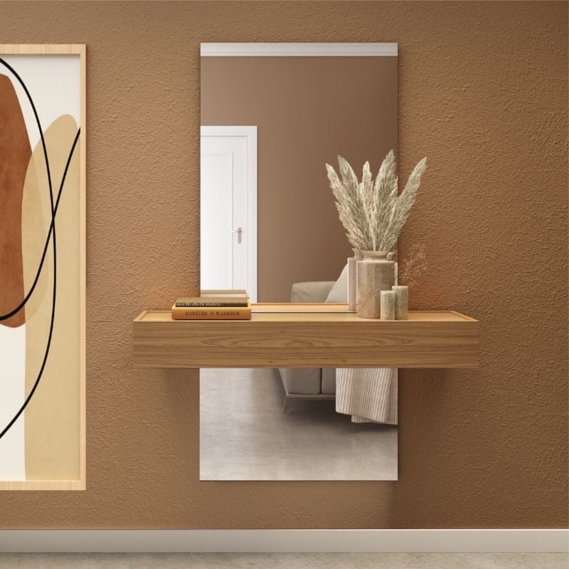 Arrimo con Espejo Decocasa Ripado Off Whithe-Castaño