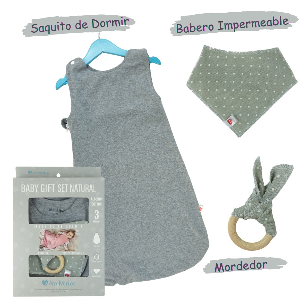 Set de regalo premium para bebe, contiene 3 productos naturales confeccionados a mano con 100% algodón de 300 hilos. esta caja contiene: 1.-saquito de dormir de bebe; se recomienda para que el bebe duerma cómodo y seguro sin destaparse en las noches, este saquito de suave algodón lo puedes usar encima de su pijama, ya sea de invierno o verano. hasta los 12 meses, lo rodea un cierre y tiene 2 broches superiores, lo cual permite abrirlo por completo para poder cambiar al bebe cuando está durmiendo sin despertarlo 2.- baberos bandana impermeable no se traspasa la humedad 3.-mordedor de madera natural especial para aliviar las molestias de las encías y dientes del bebe elige amamantas elige sustentable somos una empresa chilena de triple impacto ambiental: no causamos deshechos textiles, todos los residuos se transforman en eco productos. ademas nuestro packaging es de cartón reciclable social: entregamos fuentes de trabajo dignas a mujeres de sectores periféricos de santiago de chile económica: entregamos la mas alta calidad y diseño al mejor precio de mercado, siendo asequibles a la mayoría de las familias chilenas