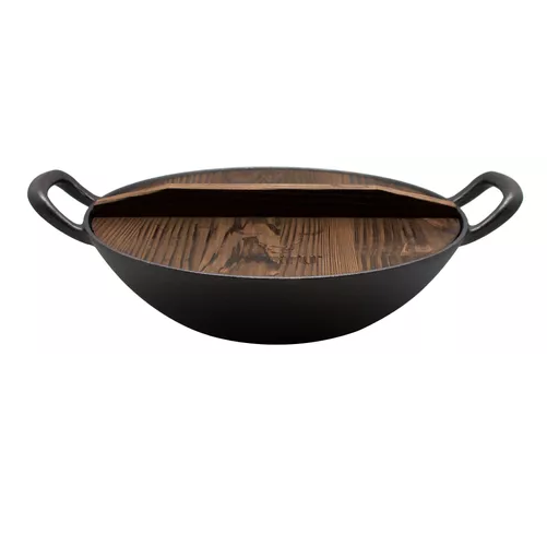 Sartén Ovalado Wayu Hierro Fundido Con Base Madera Fierro