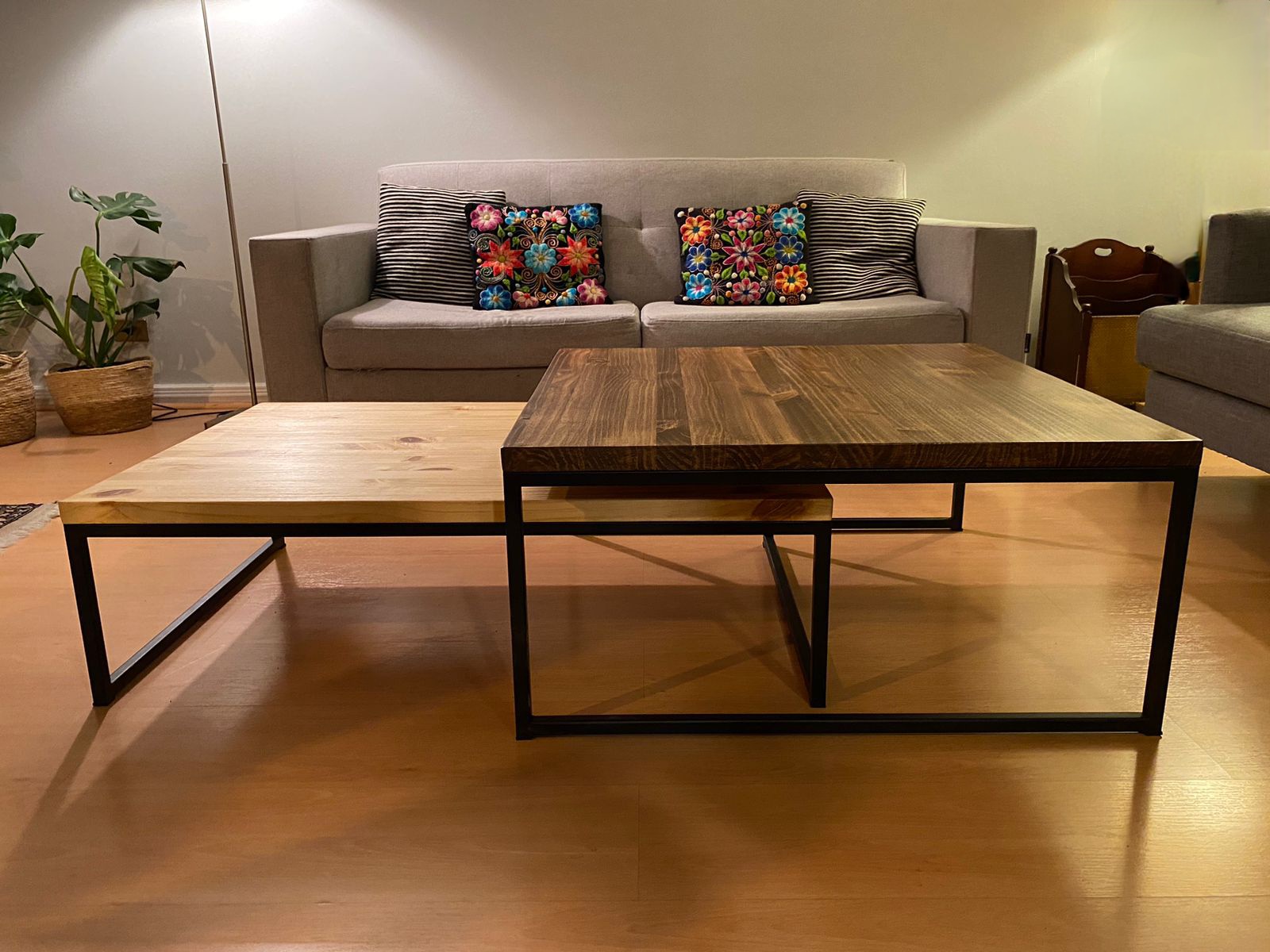 Mesas de centro nido cuadradas diseño moderno y funcional. se anidan fácilmente para ahorrar espacio y aportar estilo con su estructura en metal y cubierta de madera.