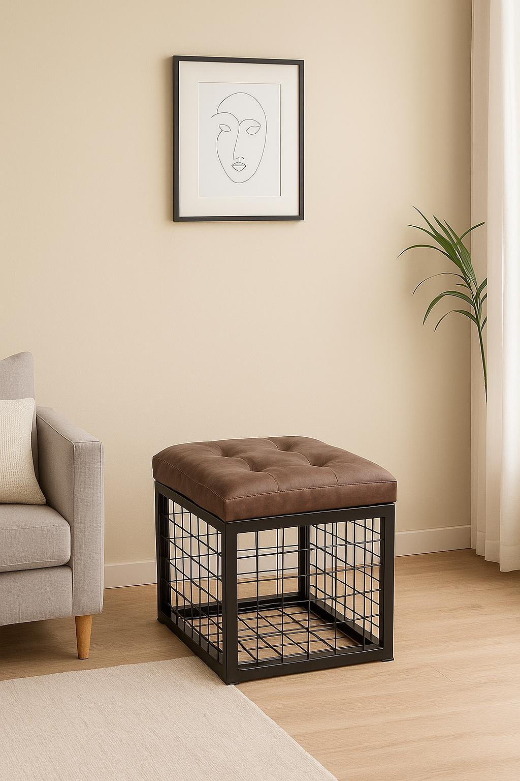Puff multifuncional con espacio abierto para almacenar y mantener todo a mano.