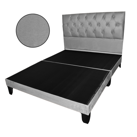 Mueblart - Base De Cama Con Respaldo A Piso 2 Plazas Gris Eco Cuero