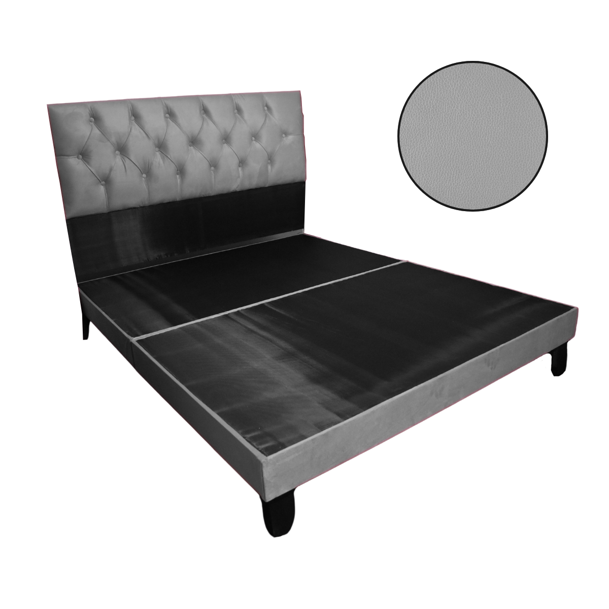 Mueblart - Base De Cama Con Respaldo A Piso Full Gris Eco Cuero