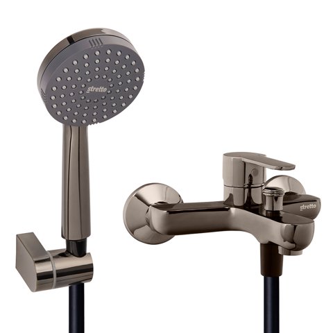 Monomando Tina Ducha Arona Negro Onyx 2 Piezas Latón Stretto
