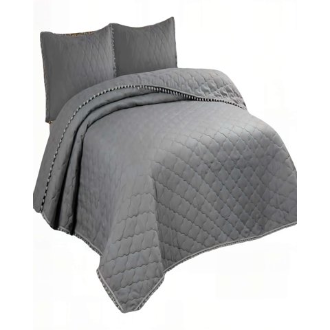 Genérico - Cubrecamas Con Bordes De Pompon King Color Gris | Lider Electrohogar