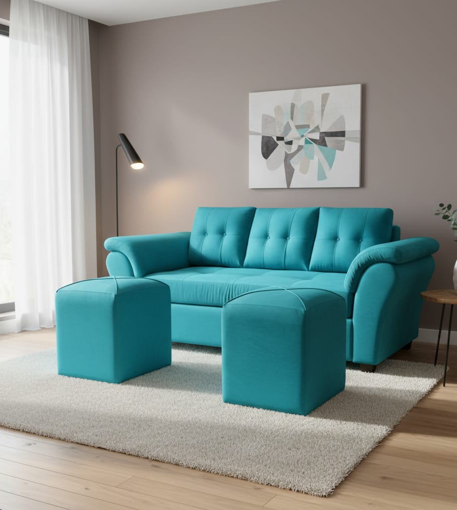 Dkora - Sofá 3 Cuerpos + 2 Puff Cedric Calipso