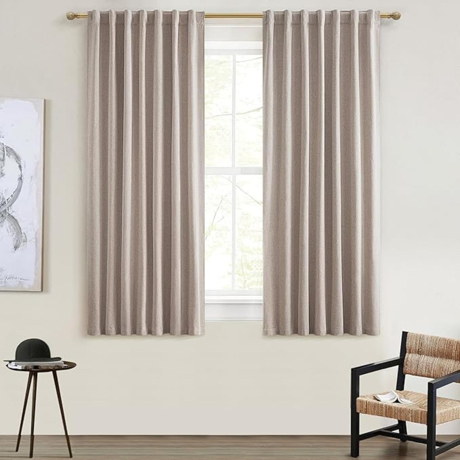 Cortina blackout de lino – 2 paños de 160 x 108 cm en gris y beige ¿buscas una cortina elegante que realmente bloquee la luz y además sea fácil de instalar? nuestra cortina blackout de lino con 2 paños es la combinación perfecta entre diseño moderno, eficiencia térmica y facilidad de uso. ideal para dormitorios, salas de estar o cualquier espacio donde busques privacidad y confort. ----------------------------------- características: material: 100% poliéster con textura tipo lino, que ofrece una apariencia cálida y sofisticada. tamaño: cada paño mide 160 cm de alto x 108 cm de ancho. colores disponibles: gris y beige, tonos neutros que combinan con cualquier decoración. sistema de instalación: tecnología de presillas ocultas (back tab), que permite colgar las cortinas sin ganchos ni argollas, logrando un look limpio y moderno. incluye: 2 paños de cortina listos para instalar. ----------------------------------- beneficios: blackout total: bloquea por completo la luz solar, ideal para dormir sin interrupciones, mirar películas o trabajar con concentración. aislante térmico: regula la temperatura interior: mantiene el calor en invierno y el frescor en verano, ayudando a reducir el uso de calefacción o aire acondicionado. reducción de ruido: su tela gruesa contribuye a disminuir los sonidos provenientes del exterior. instalación limpia y rápida: gracias a las presillas ocultas, se deslizan fácilmente sobre cualquier barra sin necesidad de ganchos visibles. más práctico y más estético. ----------------------------------- instrucciones de uso: coloca cada paño en una barra de cortina estándar a través de las presillas traseras. lavar a máquina con agua fría. secar a baja temperatura. no usar cloro. ----------------------------------- testimonios: "son realmente blackout. ahora mi pieza queda completamente oscura y se ven preciosas." – carla g. "las presillas ocultas son un detalle que hace la diferencia. nada de ganchos molestosos, se ven más elegantes y fue muy fácil instalarlas." – pablo a. "me encantó la tela tipo lino y el efecto térmico. mi living ahora se mantiene más fresco y silencioso." – lorena f. ----------------------------------- preguntas frecuentes: ¿la cortina bloquea totalmente la luz? sí, ofrece blackout completo. ¿necesito ganchos o argollas para colgarla? no. las cortinas tienen presillas ocultas que se deslizan directamente por la barra. ¿se puede lavar a máquina? sí. lavar en frío y secar a baja temperatura. ¿incluye ambos paños? sí, el set incluye 2 paños de 160 x 108 cm. ----------------------------------- otras preguntas frecuentes ¿puedo pedir factura? sí. si estás registrado como empresa, se emite automáticamente. como persona natural, puedes ingresar tus datos al finalizar la compra. ¿hacen envíos a todo chile? sí. ¿se puede retirar en tienda? no. solo envíos a domicilio o retiro en puntos habilitados. ¿tienen venta mayorista? sí, contáctanos para cotizar. aurazeus® es distribuida exclusivamente en chile por tiosale spa.