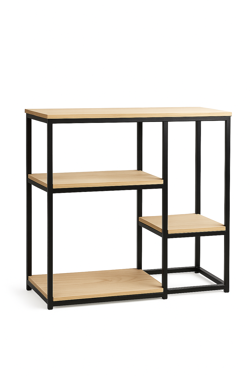 Arrimo de diseño industrial, fabricado en estructura de metal y cubierta de madera. ideal para entradas o pasillos, combina estilo y funcionalidad
