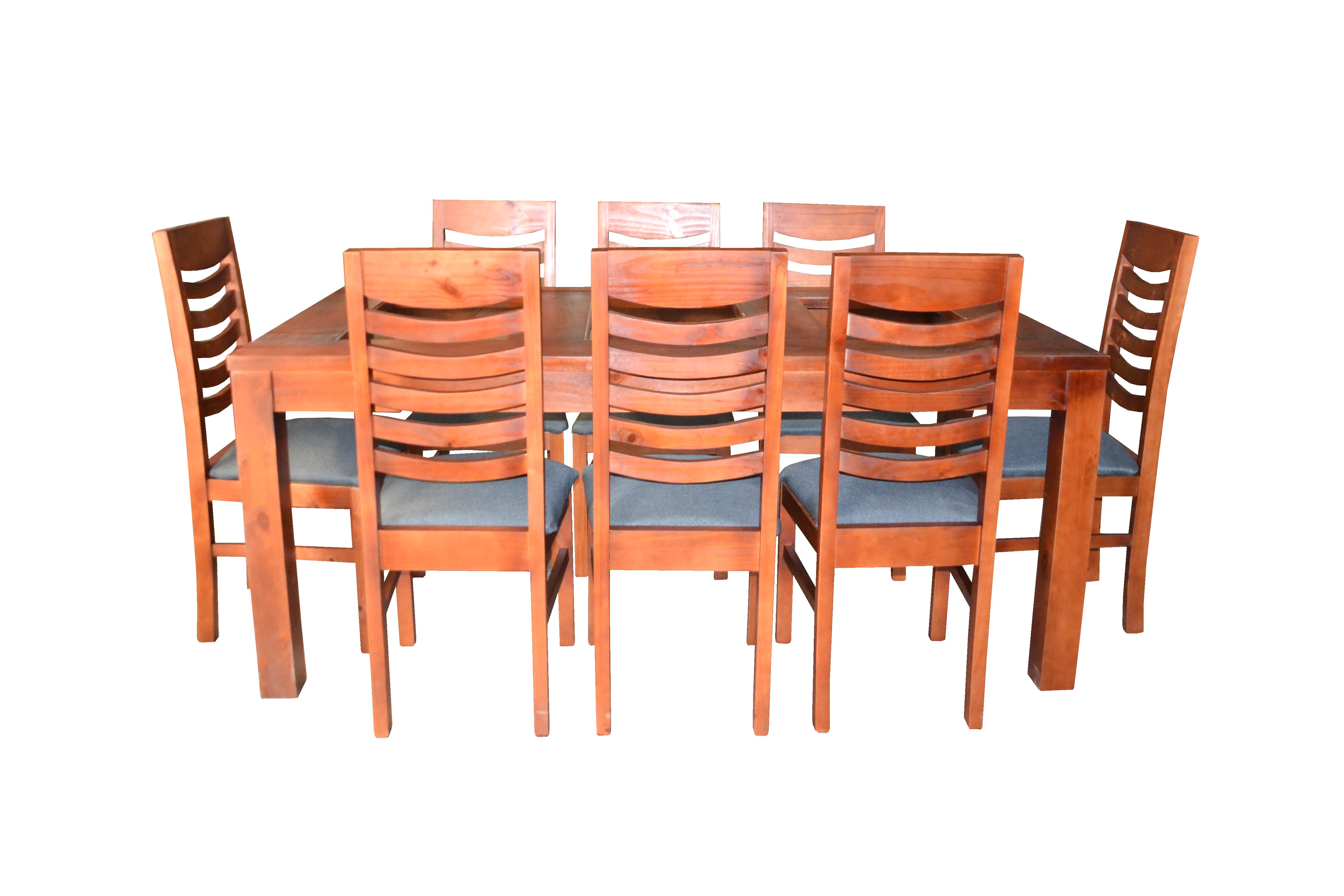 Juego comedor de madera con vidrio rectangular 8 sillas