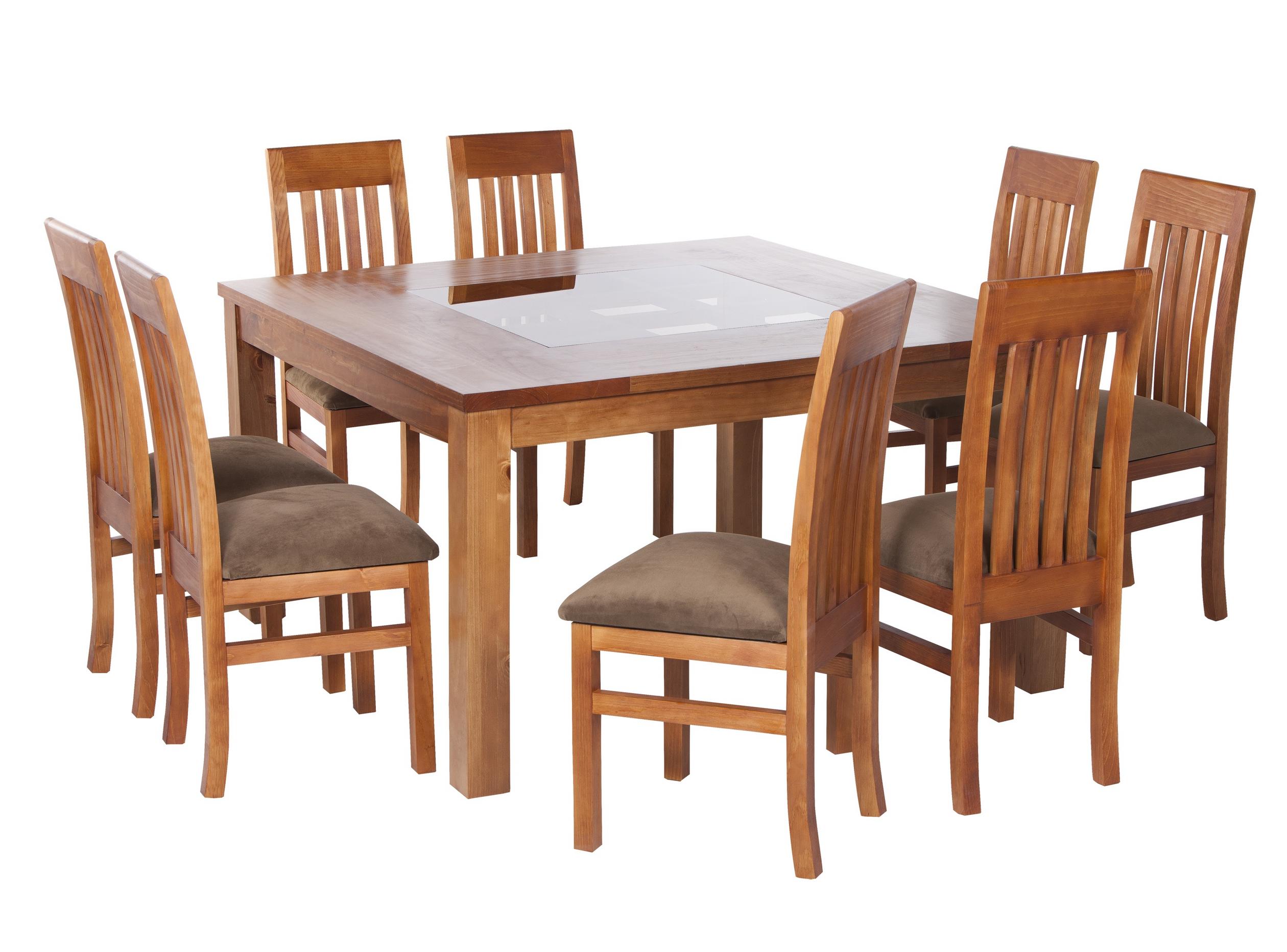 Juego comedor de madera con vidrio cuadrado 8 sillas