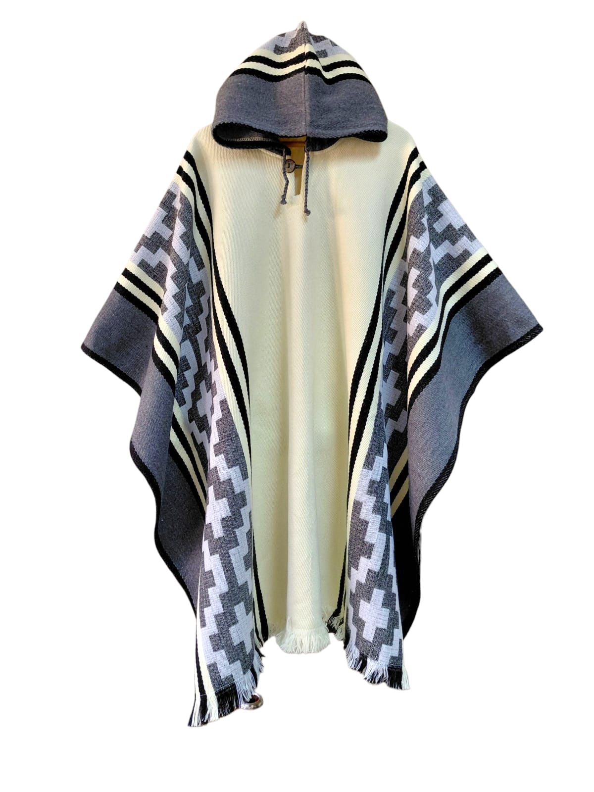 Genérico - Poncho Con Lana De Alpaca Arauco Unisex Con Gorro Gris Oscuro Y Blanco | Lider Electrohogar