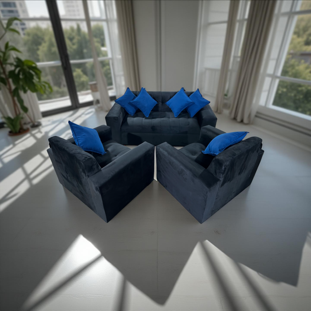 Muebles New - Juego De Living Negro Felpa Más Cojines | Lider Electrohogar