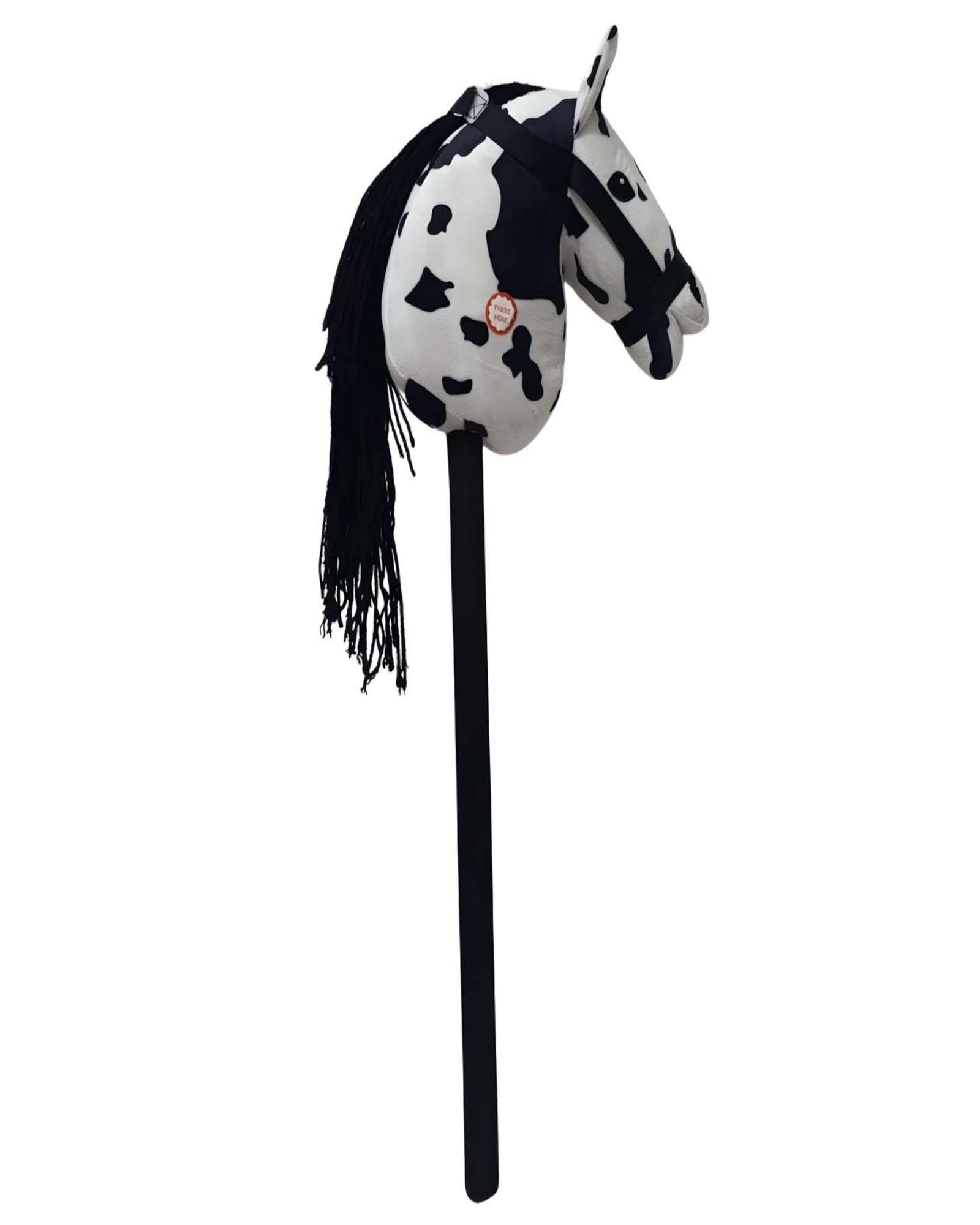 Caballo de madera con sonido blanco con manchas