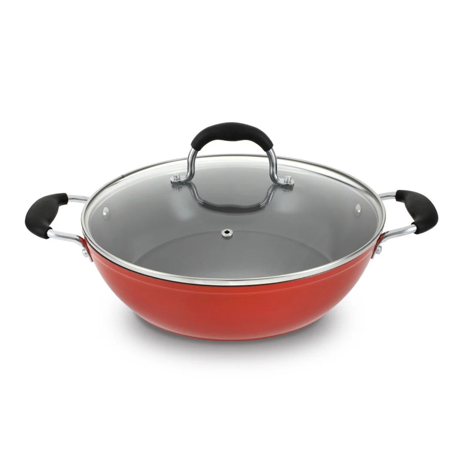 Cacerola 28Cm De Aluminio Fundido Roja Bohlier Tapa De Vidrio