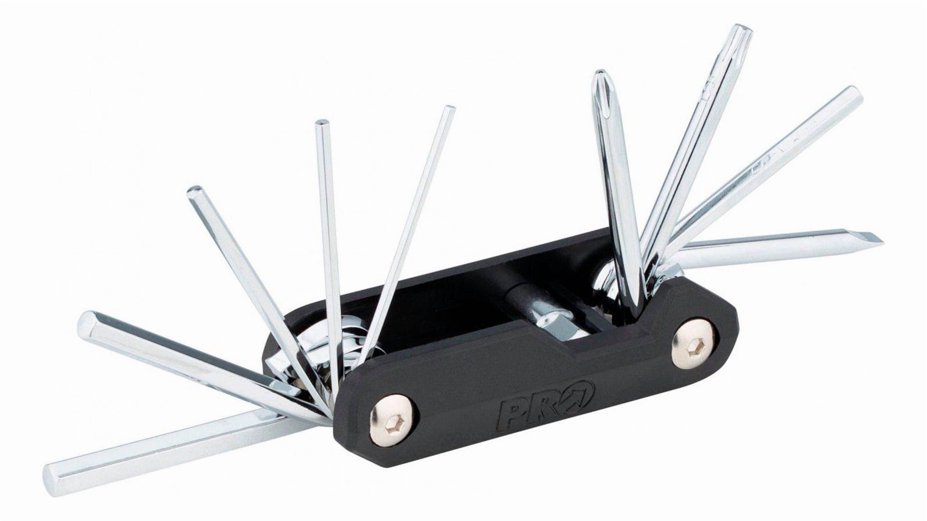 La pro mini tool 10 functions es una herramienta de aluminio con 10 funciones. diseñada para ofrecerte una mejor experiencia en tu bicicleta deportiva, la pro mini tool 10 functions ofrece 10 funciones en un cuerpo compacto de resina. las puntas de acero endurecido incluidas en la herramienta son: allen 2/2,5/3/4/5/6/8, par 25, así como un destornillador ph2 y plano. * compacta y resistente herramienta con 10 funciones * cuerpo de resina * diseño ligero * puntas de acero endurecido * 10 funciones * allen: 2, 2,5, 3, 4, 5, 6 y 8 * apriete: t25 * destornilladores: ph2 y plano