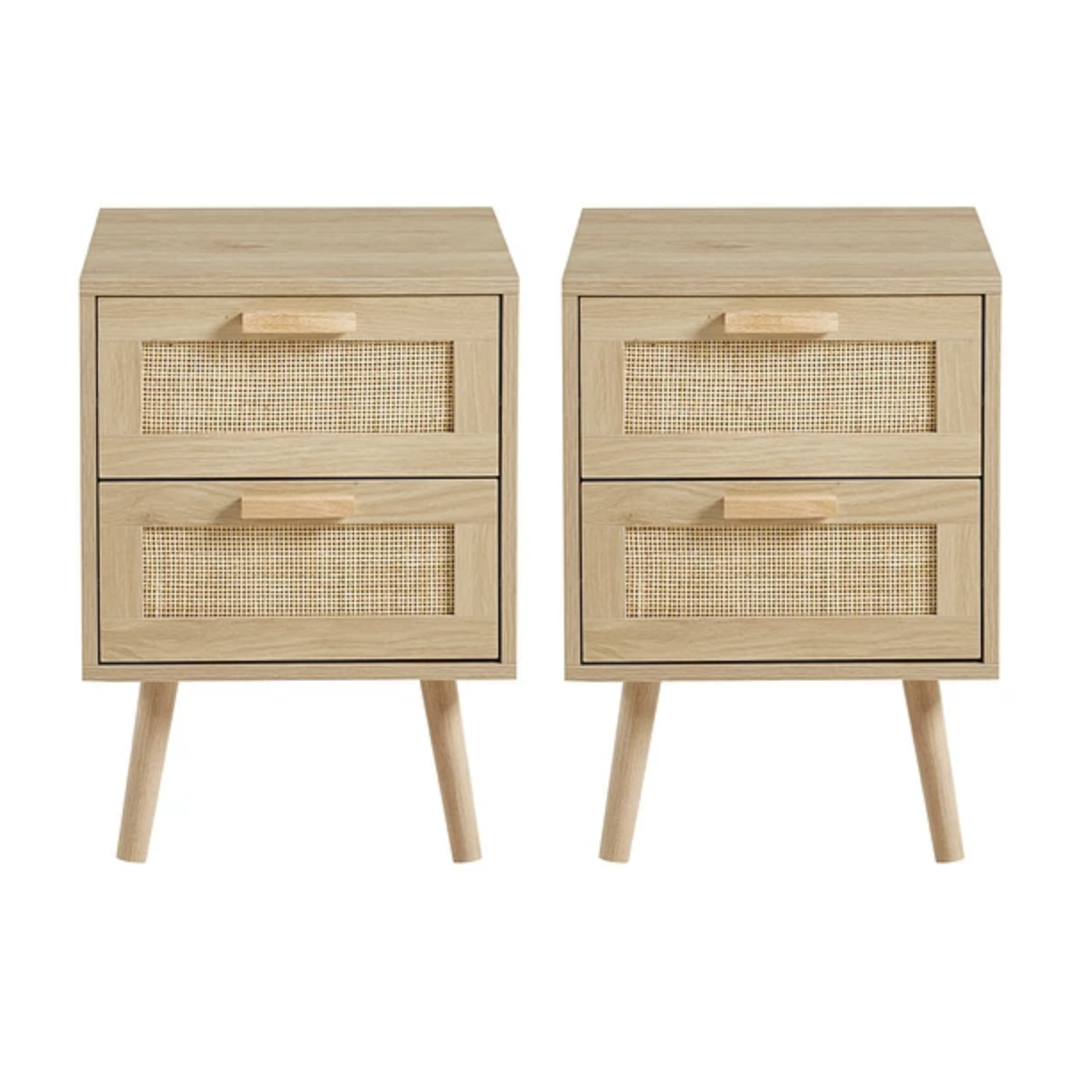 Habita2 Chile - Velador Wood Claro Rattan 2 Cajones - Mesa De Noche