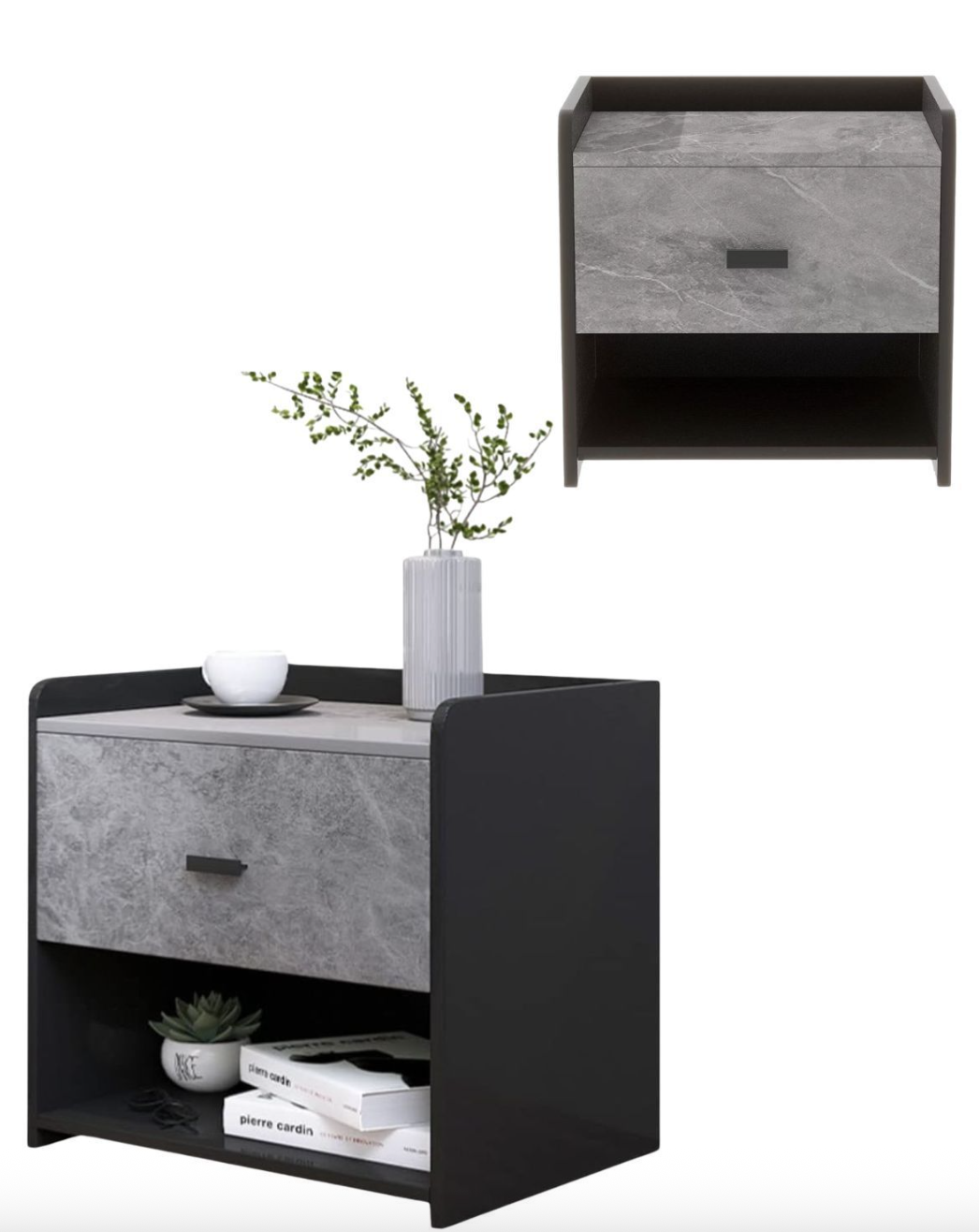 Habita2 Chile - Pack 2 Veladores Negro Elegante Midnight 1 Cajon Gris | Lider Electrohogar