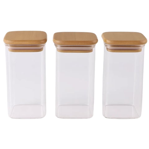Disparo - Set 3 Frascos Hermeticos 600Ml Cuadrado Vidrio 18Cm Tapa Bambú