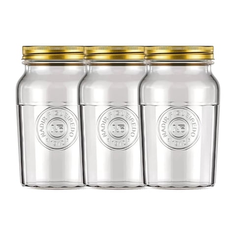 Nadir - Set 3 Frascos Americano Vintage Vidrio 1000Ml Tapa Dorada | Lider Electrohogar