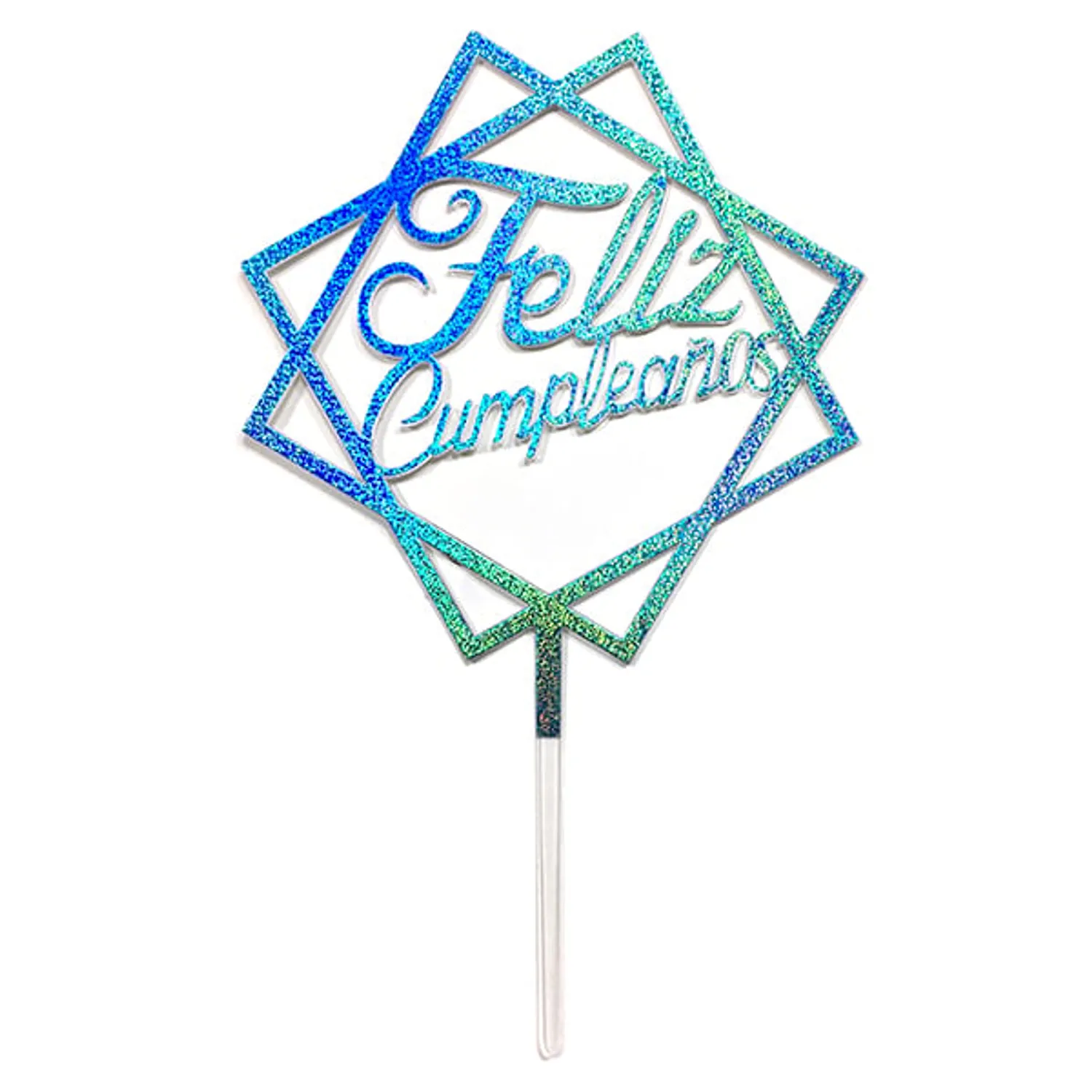 Decoración para torta de acrílico con diseño cuadrado en color celeste, ideal para añadir un toque moderno y elegante a tus postres en fiestas y celebraciones especiales. fabricada en acrílico resistente y liviano, perfecta para destacar cualquier mesa dulce.