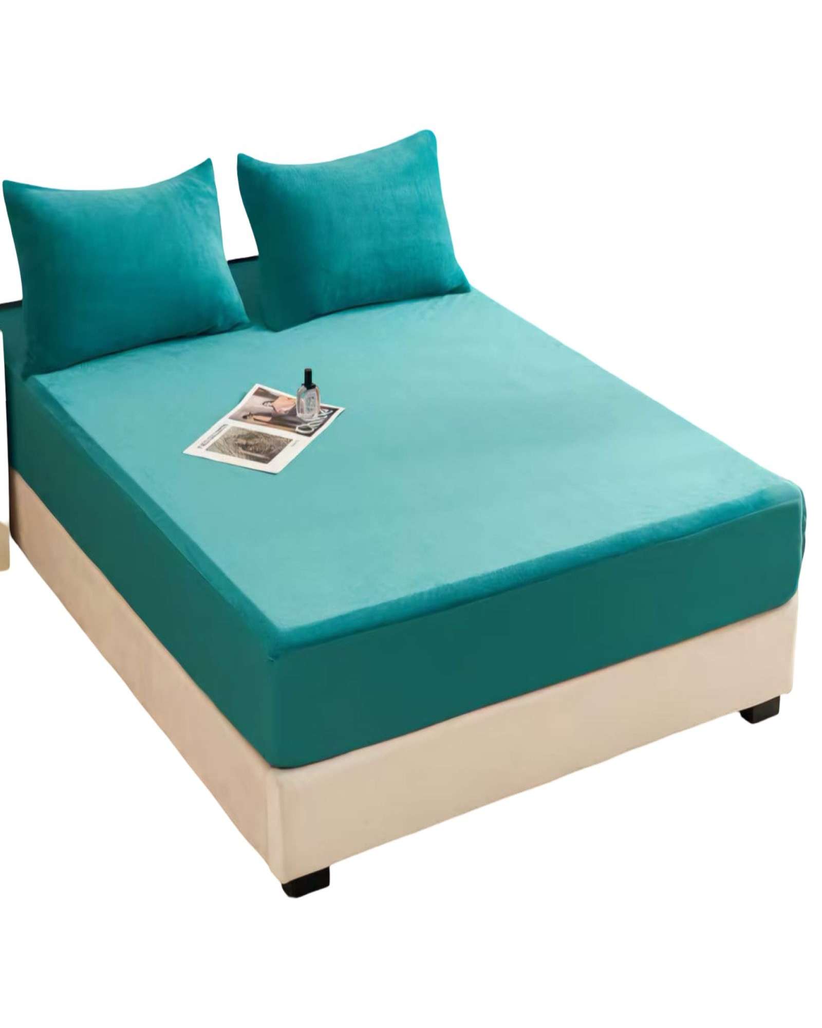 Teng Fei - Cubre Colchon Protector Impermeable Plush - Turquesa - King Plazas