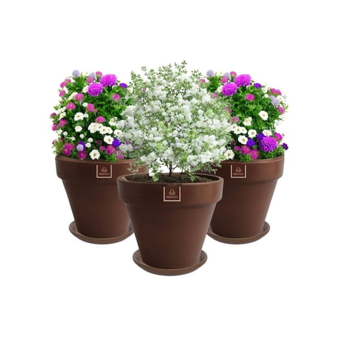 Mestiza - Set De 3 Maceta Kony 19Cm Morena Natural Y Sus Platos | Lider Electrohogar