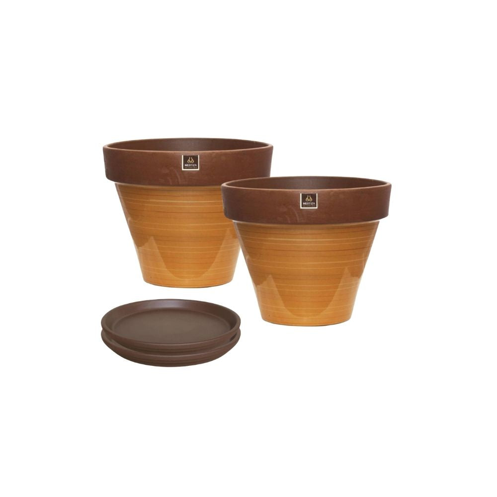 Mestiza - Set De 2 Maceta Kony 15Cm Morena Mostaza Y Sus Platos | Lider Electrohogar