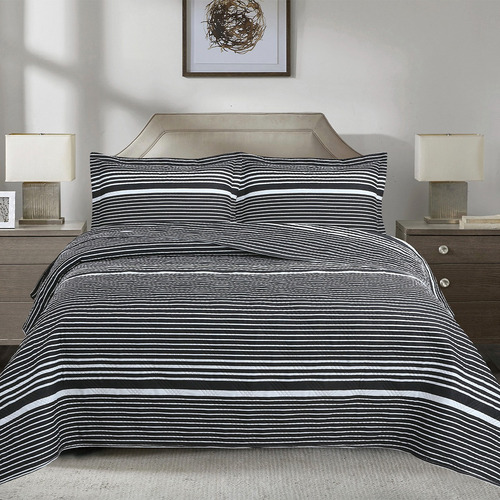 Quilt andes estampado listado negro 2 plazas