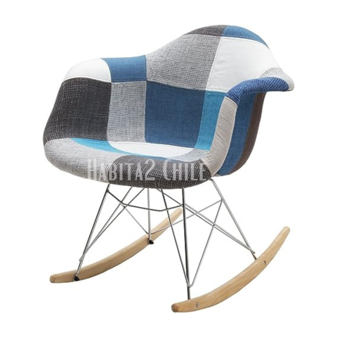 Habita2 Chile - Mecedora Silla Rocking Asiento Patch Chenille - Celestoide | Lider Electrohogar