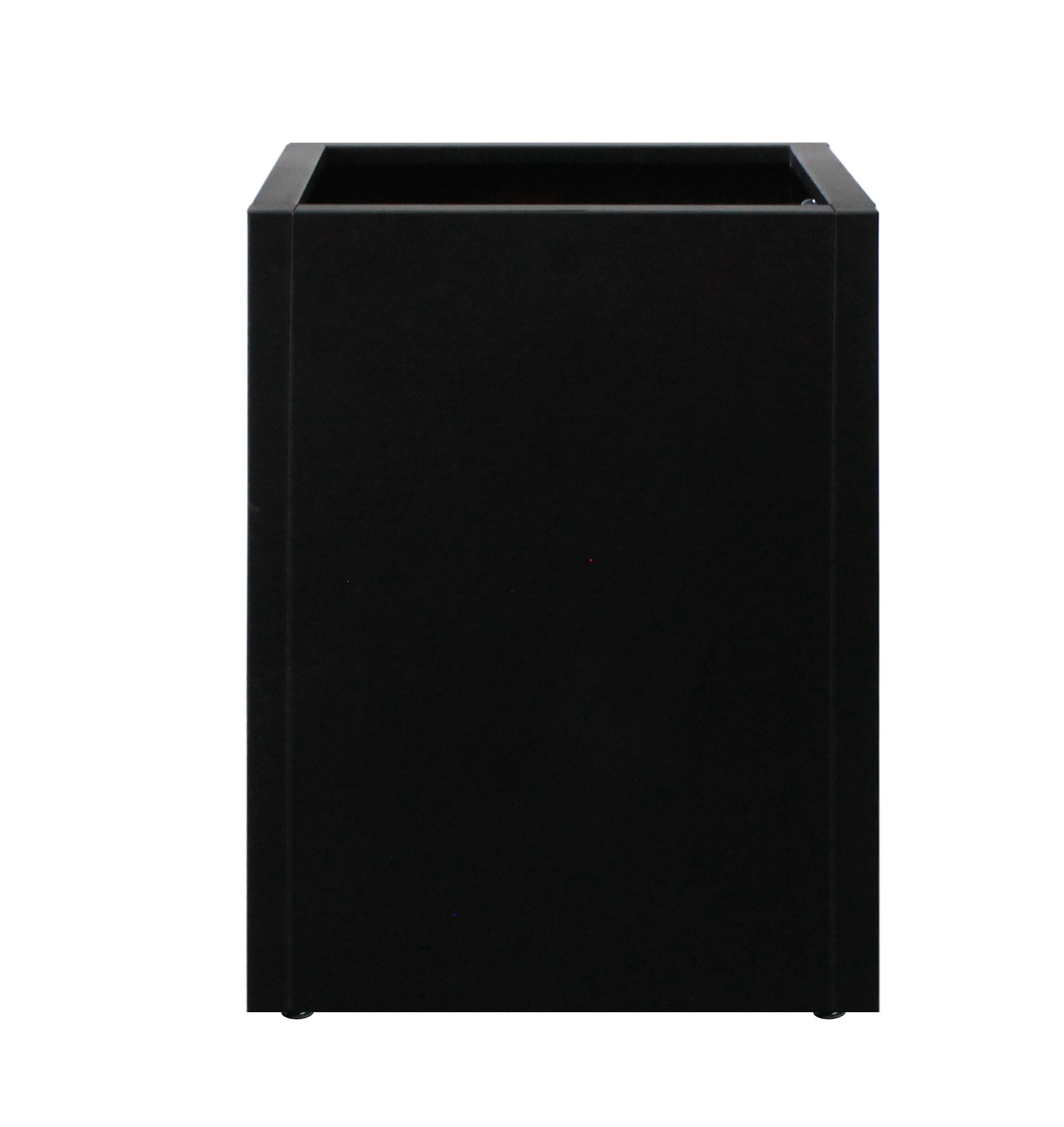 Macetas modulares, disponibles en distintos tamaños ideales para combinar alturas pintadas con pintura electrostática negro mate para soportar la intemperie, humedad y rayos uv, la bandeja base ofrece dos posiciones de altura interior a objeto de ubicarla de acuerdo al requerimiento de tierra para la planta.