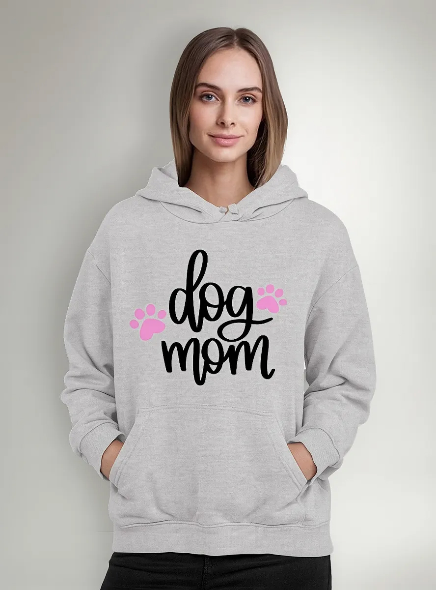 Polerón dog mom mama perruna estilo urbano, tipo canguro con capucha y bolsillos. confeccionado en tela de alta calidad con estampado en vinil textil resistente. ideal para los amantes de los perritos dog lovers y la moda streetwear.