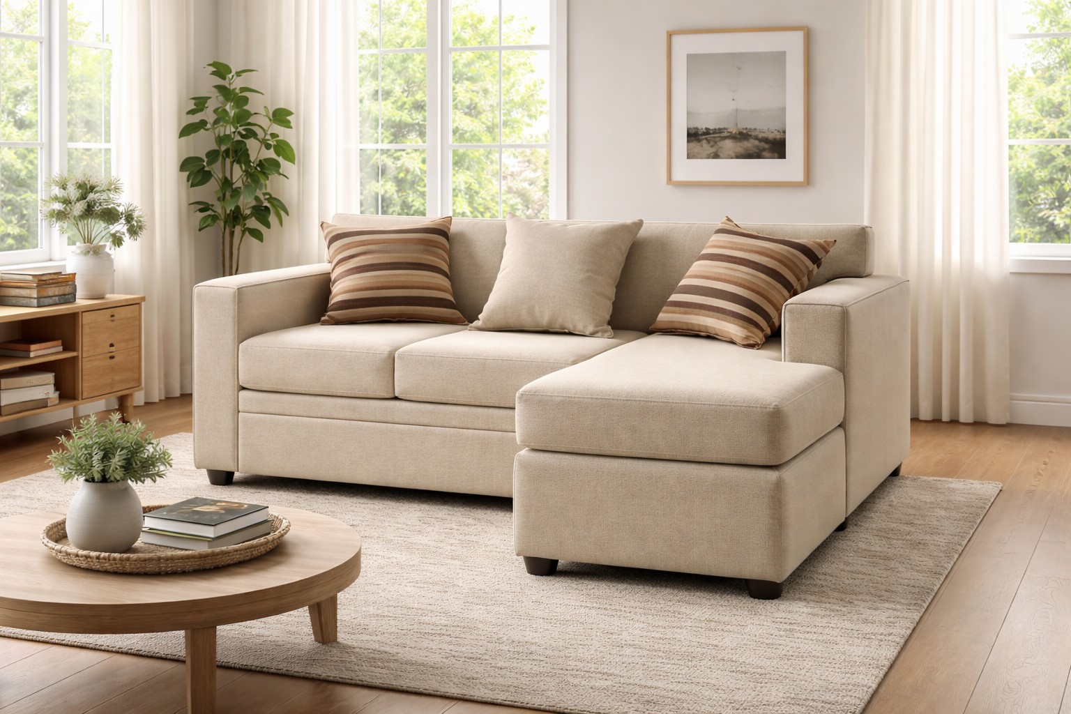 Almore - Seccional Romano Derecho 3 Cps Tela Beige