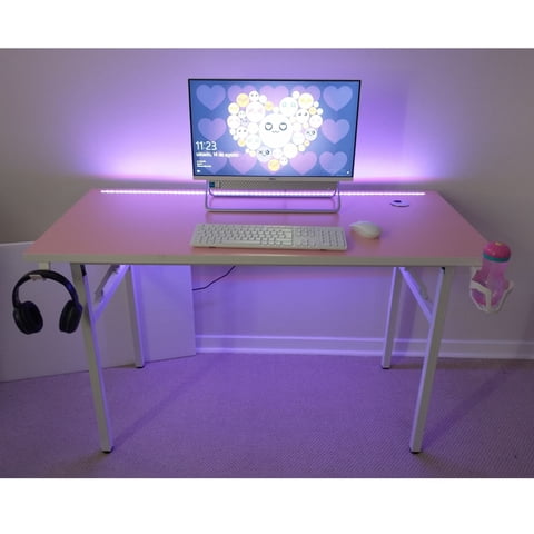 Velazio - Escritorio Gamer Plegable 130 Cm Rosado Luz Led
