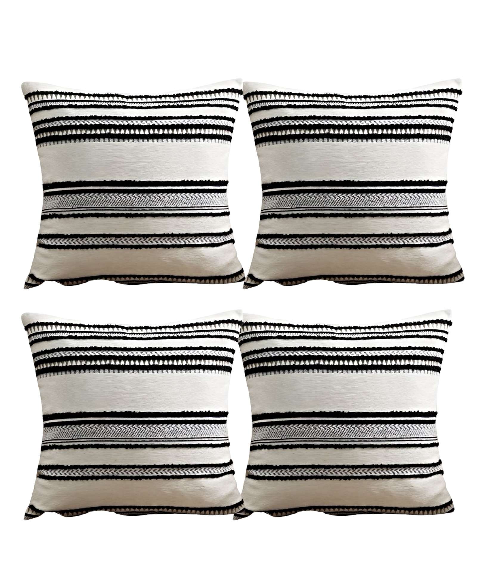 JUEGO DE 4 FUNDAS CHENILLE CON LINEAS GRIS