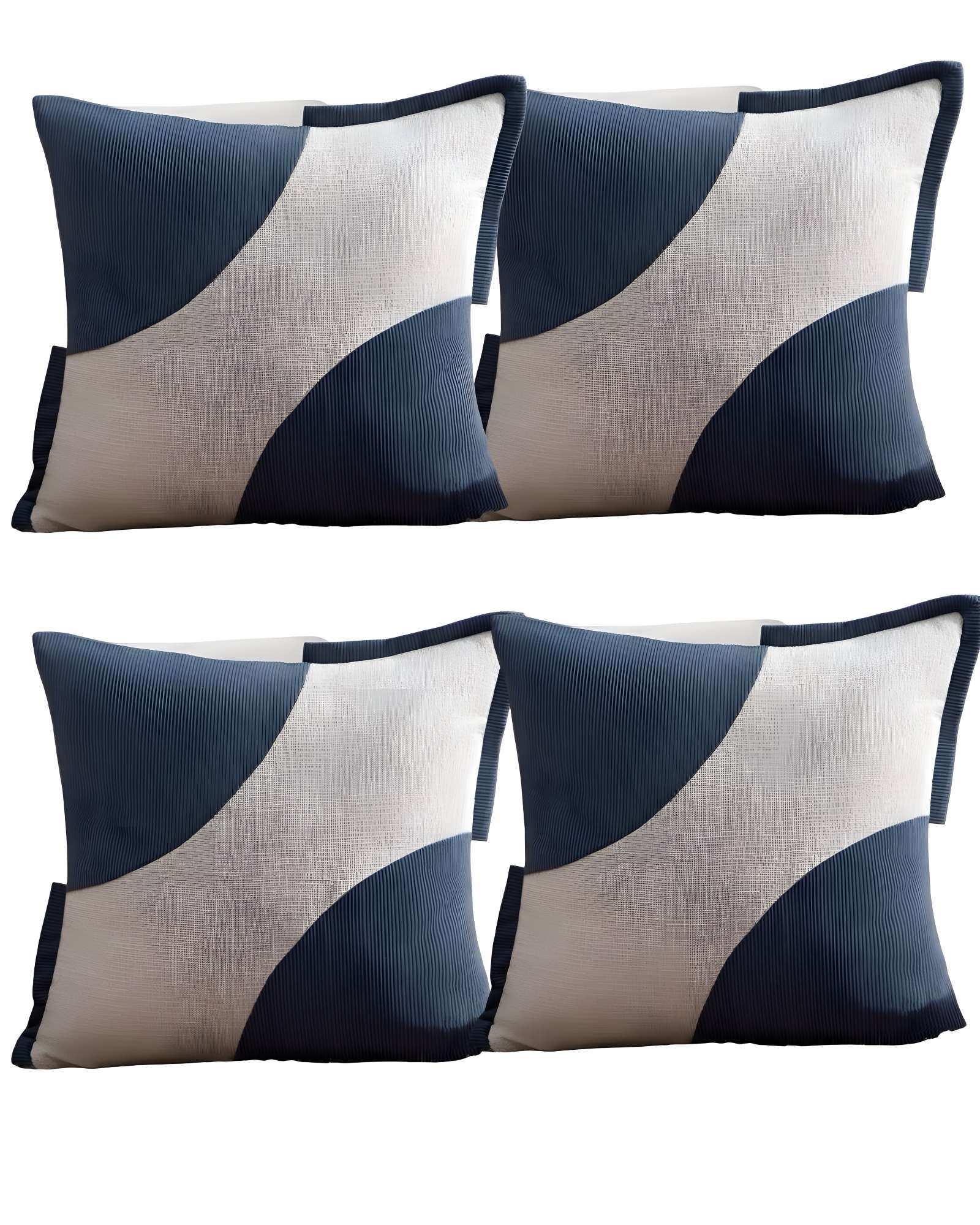 Genérico - Pack De 4 Fundas De Cojines Diseño Tela Pana Empalmado 45Cm X 45 Cm Azul