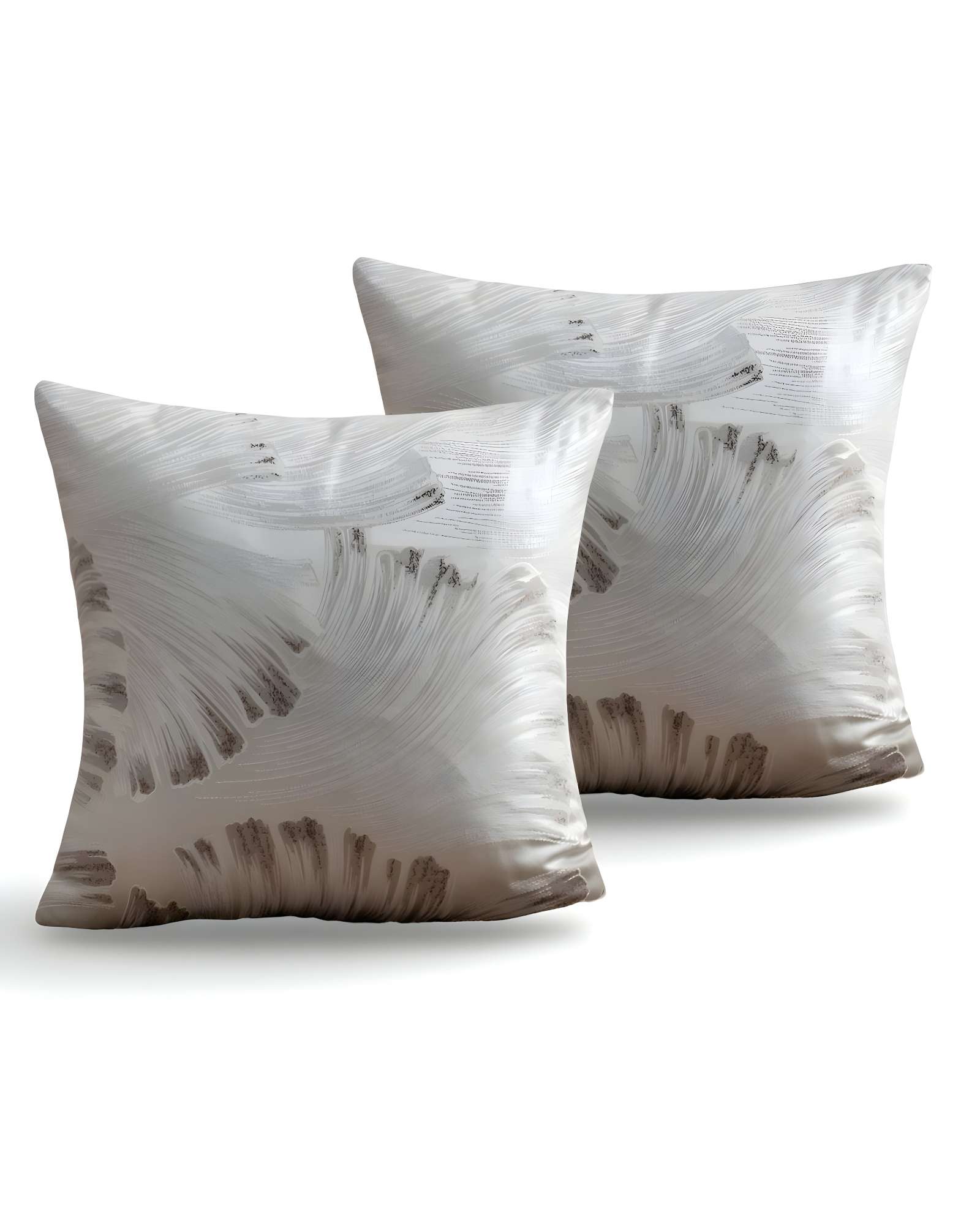 Genérico - Pack De 2 Fundas De Cojines Satin Diseño Hojas 45Cm X 45 Cm Beige